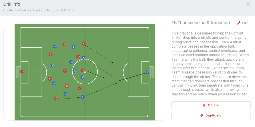 2. Click on the desired drill to open a pop-up window. From this window, you can delete or duplicate the drill. To modify the sketch, click Edit in the upper-right corner.