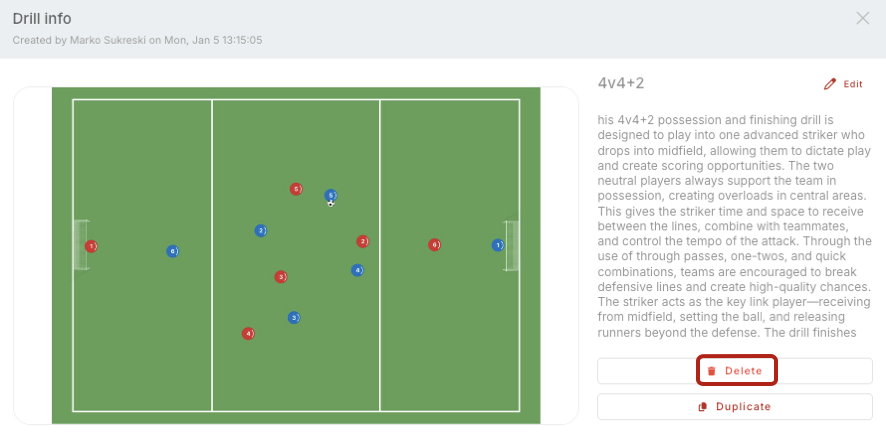 2. Click on the drill you want to delete, and a popup window will open. Click on Delete and confirm your choice.