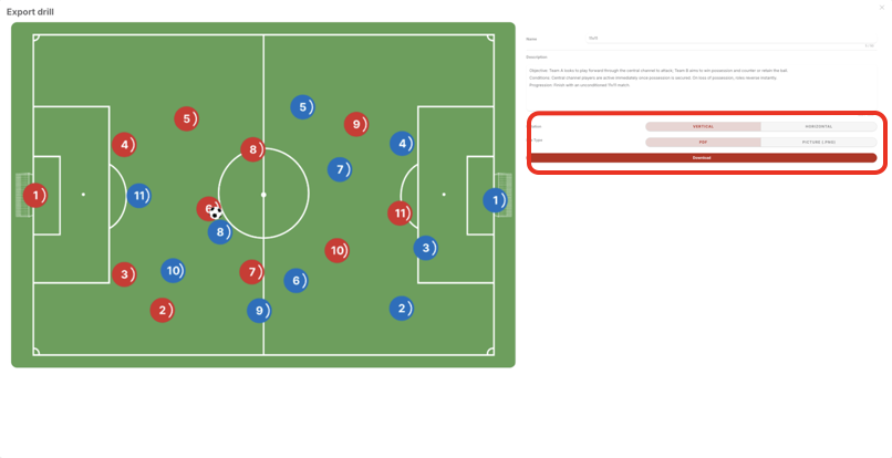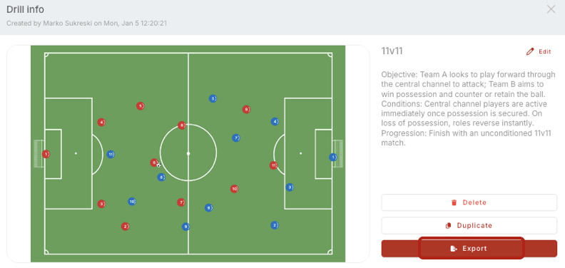 You can export drills you created in JPG or PDF format and save them to your device: