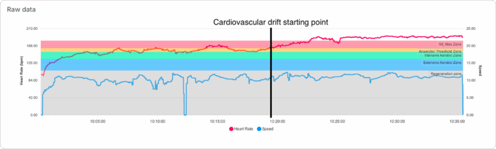 Cardiovascular drift (Figure 2) refers to the gradual increase in heart rate (HR) that occurs during prolonged, steady-state exercise even when the running pace and overall workload remain constant. It’s one of the most important internal markers coaches should understand when analyzing endurance sessions.