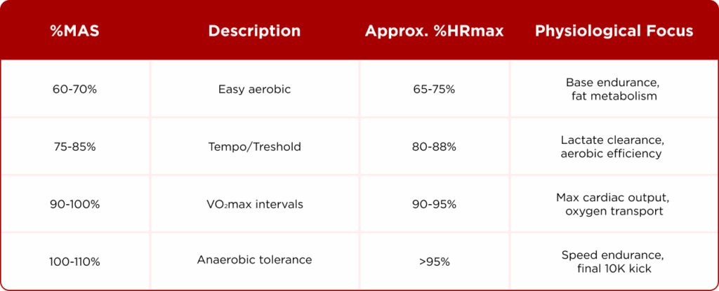 Combining MAS with HR allows a double control: external load (speed) and internal load (HR response) the gold standard for individualized endurance programming.